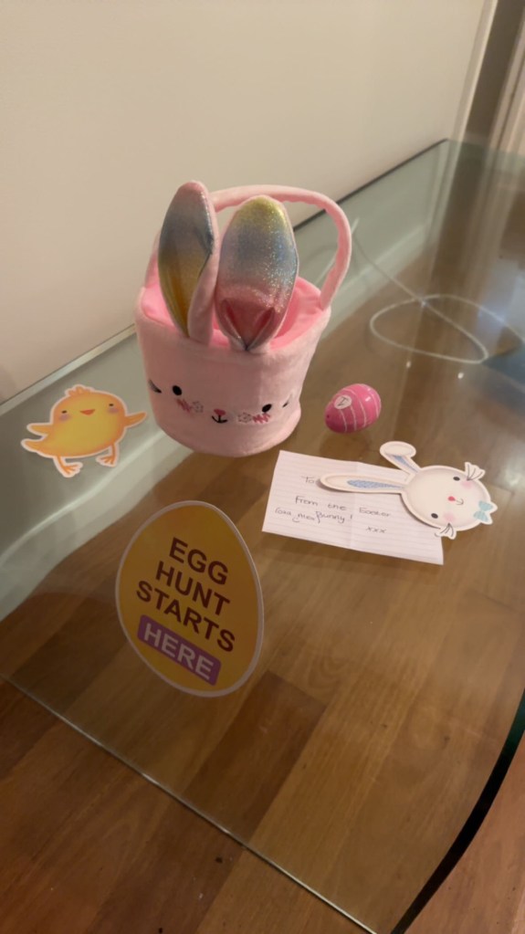 Happy Easter! Today, I was seeing my girlfriend, so we could do the Easter egg hunt! She arrived at 11:30am and was excited to do her egg hunt! I really hope she liked it.