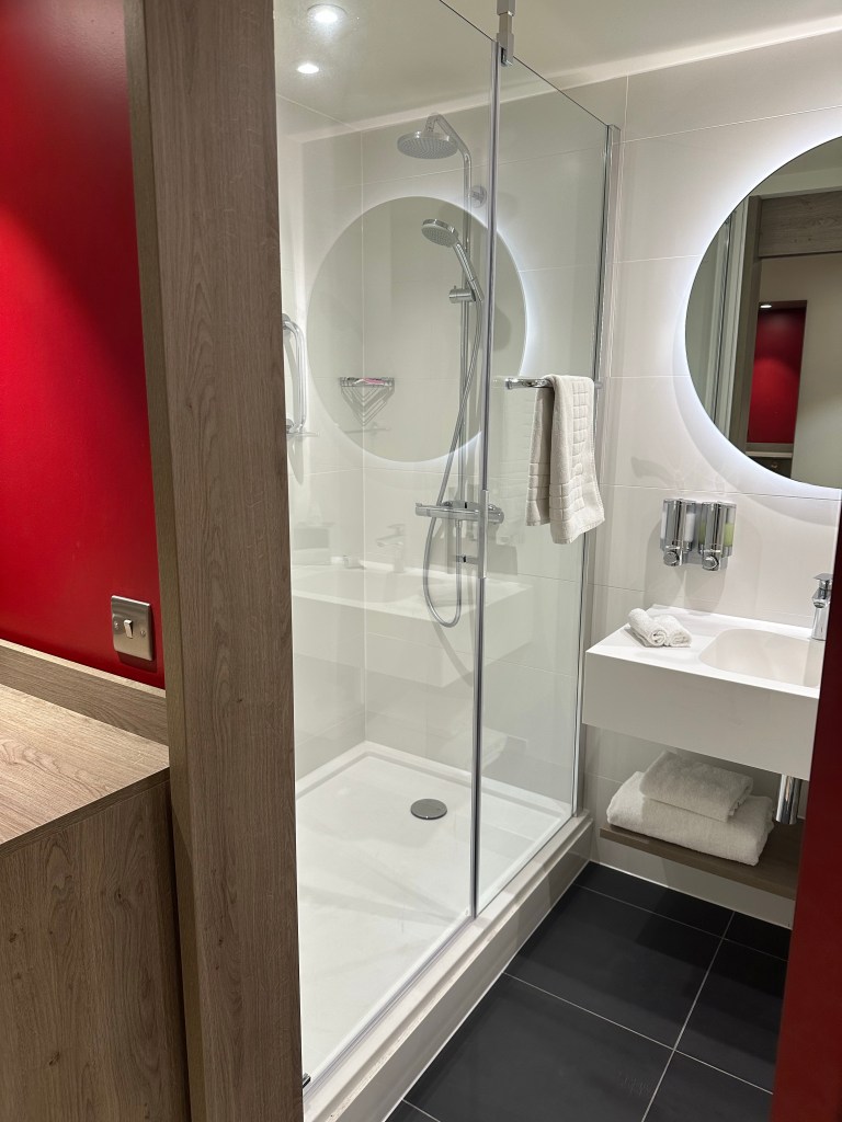 Really didn’t know what to call this area. But, I was very surprised by the size of the TV. But, did I watch it once? No. I didn’t. Unlike my trusted premier inns, they had nowhere to plug in a fire stick. And it’s not a smart TV. 8/10 for the size. 2/10 for its functionality in todays world.