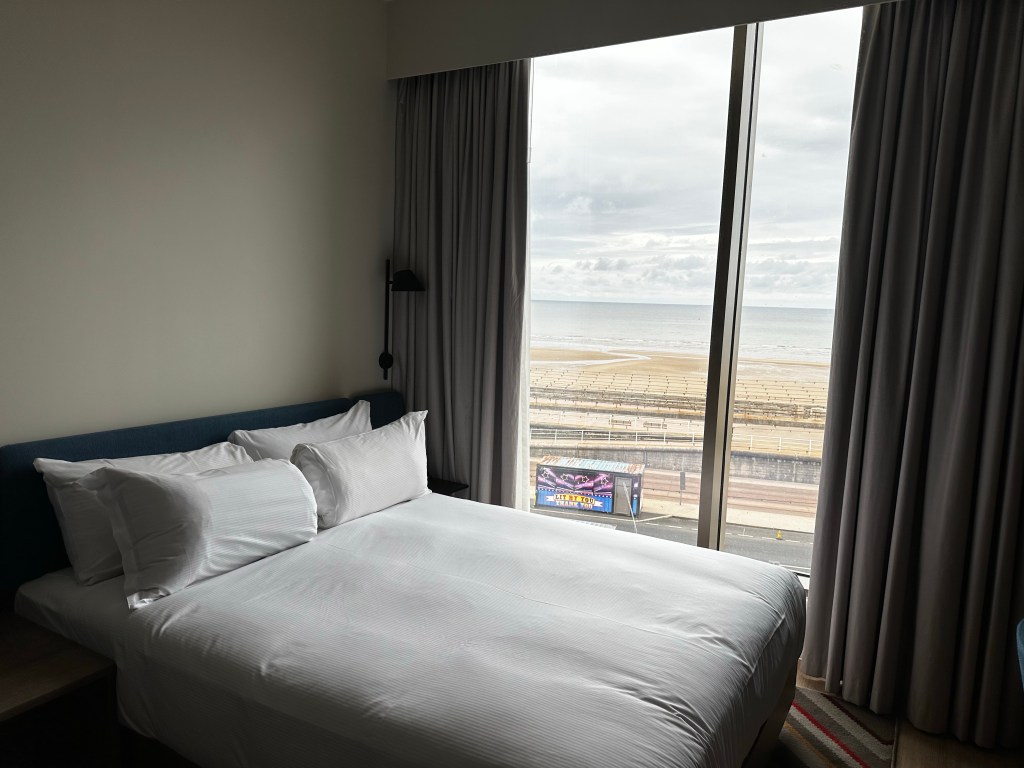 The first room I got was the standard room and ‘without a view’ which meant it was on the other side of the hotel, with no sea view. This is in Blackpool, so, there isn’t much else to look at other than the sea. I was still able to take an aesthetic picture for instagram though, of me… looking out into a car park. The joys.