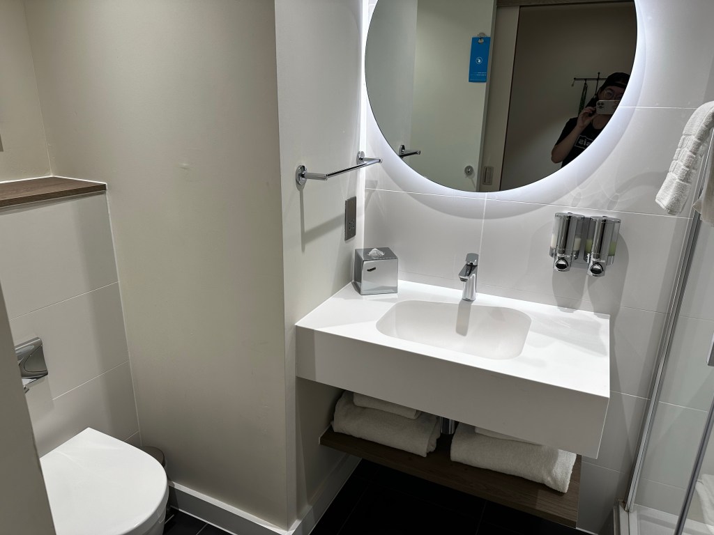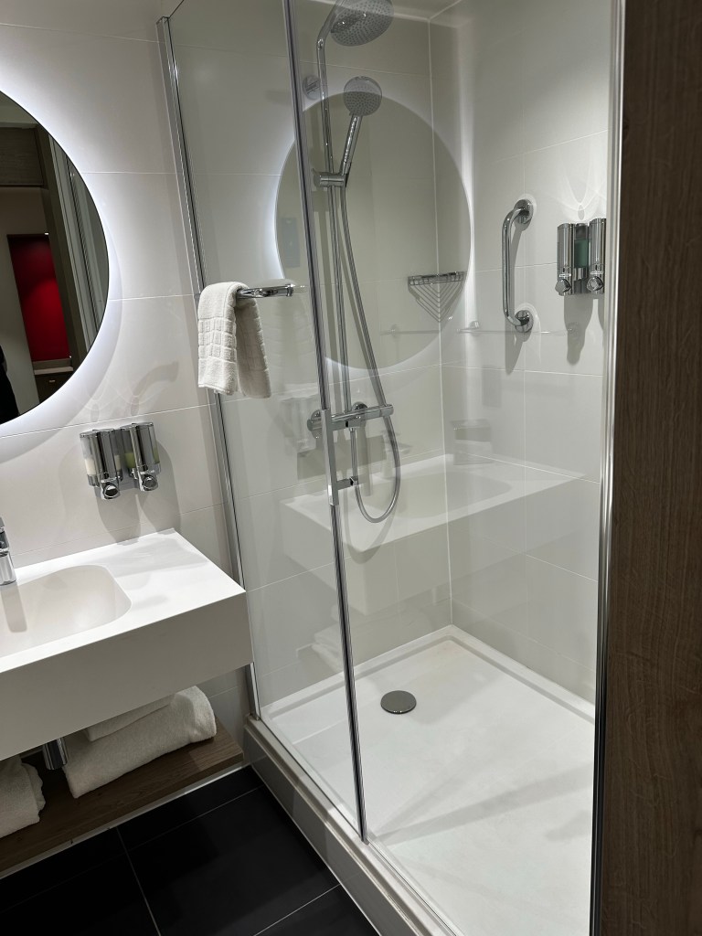 I realised that the bath mat was the thing hanging in the different space to the towels. Whoops, again… I wish I had a shower like this in my house, I just really like it, I don’t know why. Though once I stayed in a premier in that had a bath!! I am also glad that this shower has a little shelf. You’ll understand in my next post.