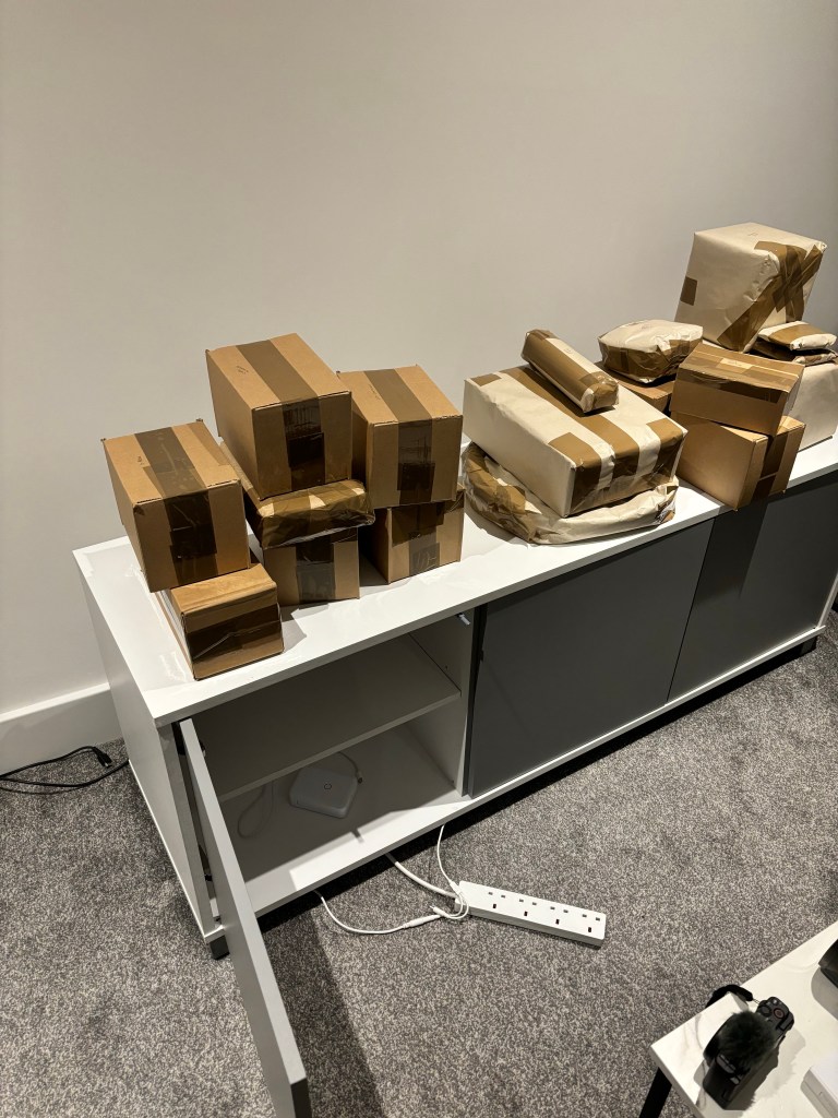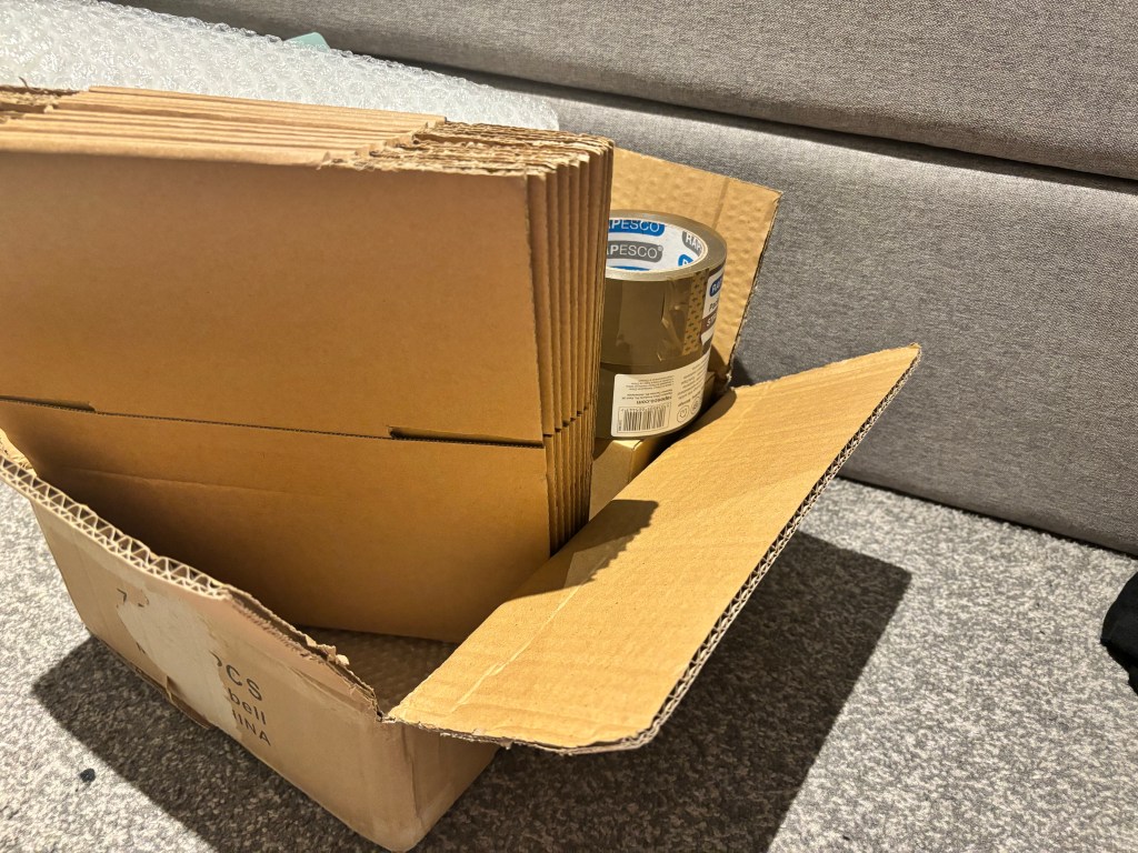 Here are my many packages ready to be addressed and going to their new homes, on top of what was my old tv unit (which my parents now have in their dining room). And secondly, that’s my fire stick being put back to factory settings. Although, due to eBay buyers being well, eBay buyers… the sale for that fell through so I still have it, under my bed. Thought it’s handy to keep for airbnbs & hotels, under the right circumstances.