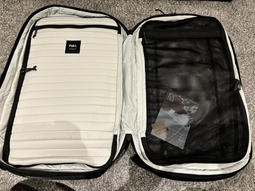 The bag opens “suitcase style” like the last one, one side has the mesh lining, the other side has a laptop pocket. It fits my 15” MacBook in it, but not when it’s in a case. But that’s dependant on the case you have. Just know that it’ll be a tight fit if you have a 15” or 16” laptop. The weird little zipped area from the last big isn’t in this bag. What was that meant for? Shoes? I don’t know. But that also means the waterproof pocket has also been removed which I wasn’t happy about. That pocket was really handy for going through security at the airport.