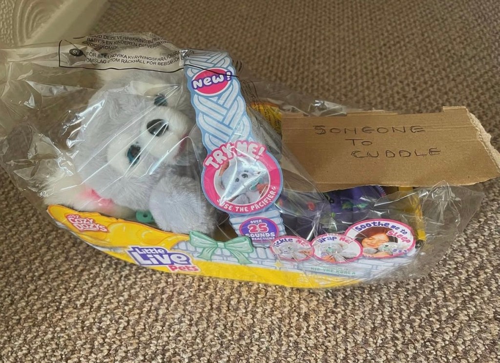 Ah yes, Snuggle Pie. In July of 2021, when my mental health was, not at its best, I opened my bedroom door one morning to see my mum had left me this before she went to work that morning. I found out he fit into 10” teddy clothes so I got him some cute PJs, and he was a great friend for me haha