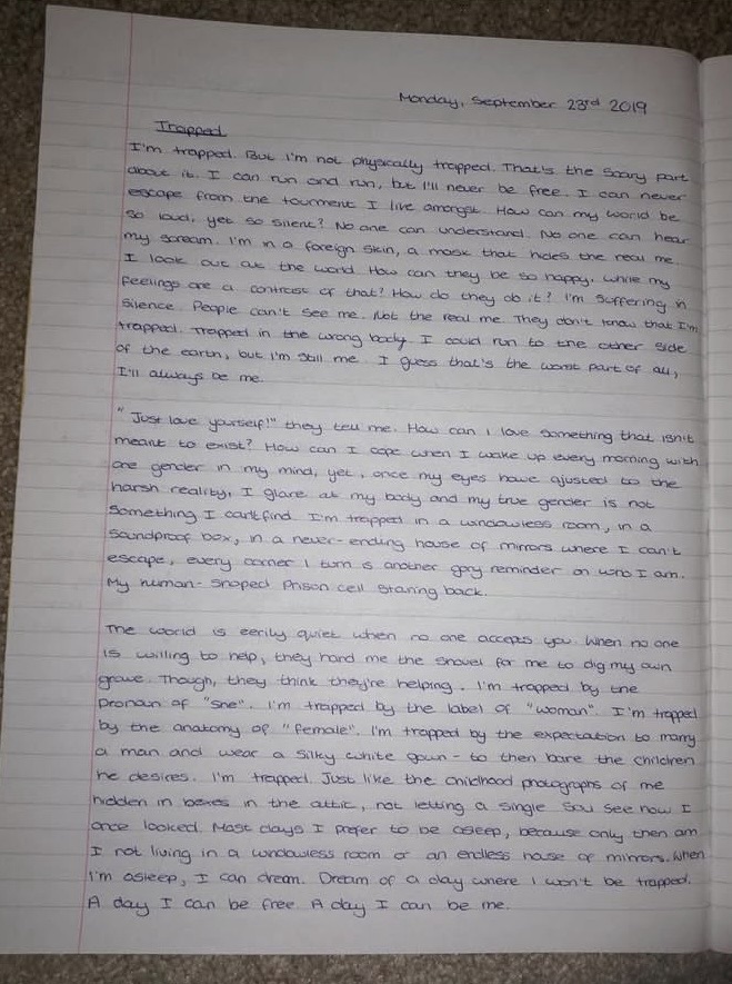 These are all from when I was studying science in college back in 2019, I am planning on making a whole post about my college days at some point this year, so I won’t go too in depth here, but these were posted on my Instagram feed in 2022, so, here they are. The first picture were my very aesthetically pleasing folder and workbooks. The second picture was a diagram I drew and coloured hours before I had to go into hospital from a swollen gum lol. The last picture was something I wrote for English class where our word was “Trapped” – so no longer align with who I was then, but I still think it’s a decent piece of writing.
