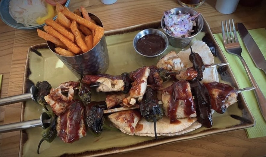 Photos one and four were taken on my first trip to my new local park! It was the park that inspired Central Park in New York. You’d have thought it would have been the other way around, but nope. Picture two was of some wild flowers at a train station i used to go to all the time and the third picture was a meal I had in Chester that looked a million times better than it tasted.