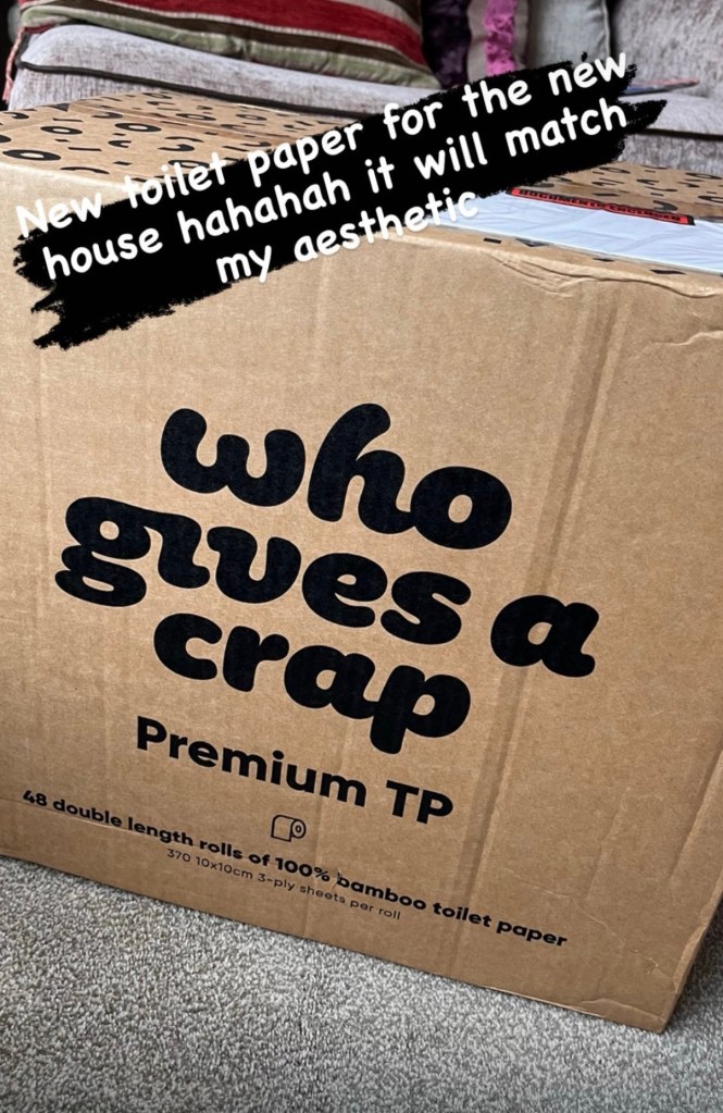 The first picture here is of the first little jars I got for my sugar and hot chocolate, and pictures two and three are of my box of eco friendly toilet paper- one of the rolls that inspired the wall art on my bathroom wall. And then the last picture for June is… my home. The day I moved in on May 24th!