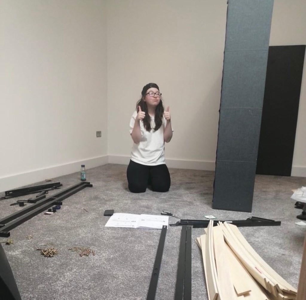 This photo was taken the 3rd June by my mum on a whim, as a response to my dad’s text asking how we were getting in building my new bed. My mum sent this as a reply saying “she’s doing it all by herself” and I find that so deeply poetic. I used this photo as a reference- now on the day I moved in every year (May 24th) I take a photo of me in the same spot! On each year I’ll post the current year’s photo and the previous years under it in descending order.