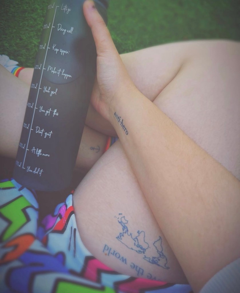 I tell a big fat lie, there’s still more photos from June, just not from that trip thankfully! The first photo is me in a fun outfit about to go to my parleys house, the second picture is me at my parents house, the tattoos are fake, but they legit lasted months! And the third picture is the things I got from the arcade from my trip.
