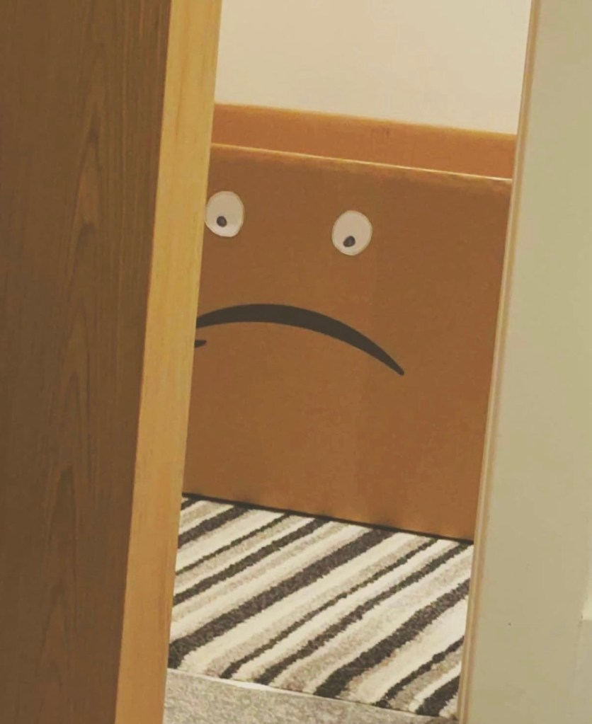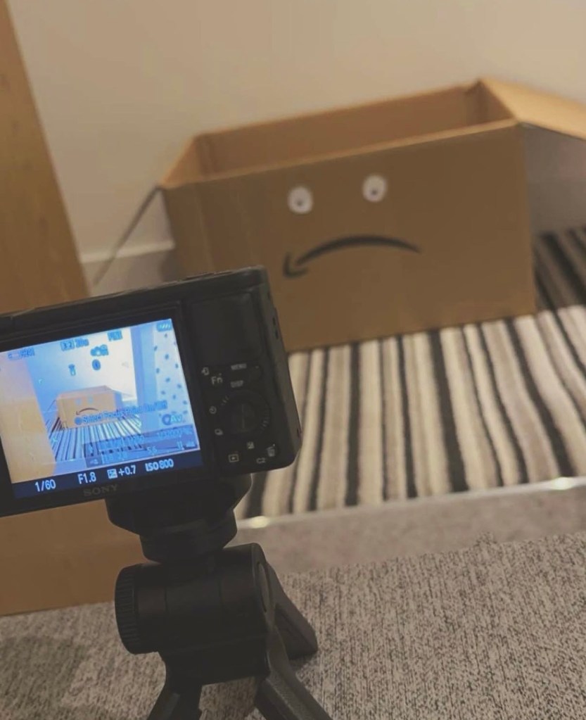 May I present: Sad Amazon Box! So remember before when I said I was getting a new bed? Well I hadn’t got the new bed yet but I was preparing by buying my new pillows and duvet and they gave in a huge Amazon box! So I turned it upside down and added eyes… and this, Sad Amazon Box was born. The first and second who was the set up for the third photo, where I dabbled in photoshop to create the background haha. Y’all will never know how amused I was at that thing. For literal months.