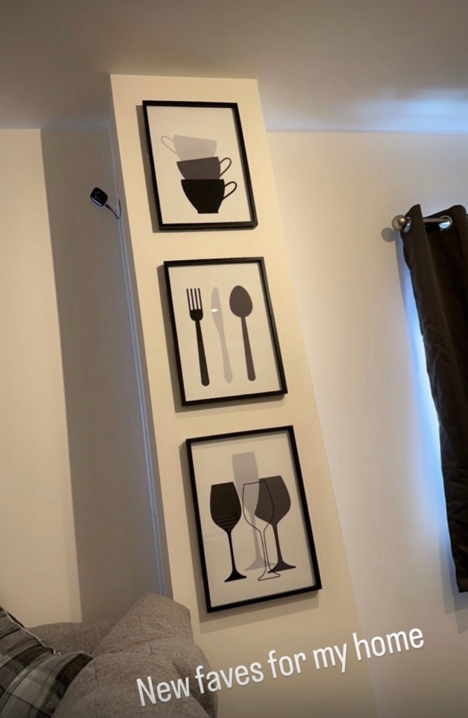 Early October was super quiet! I did take a cute picture of a butterfly? Moth? Outside of the nursing home my nan was at before she passed. The second photo was the last photo of my brown bath shelf as I had ordered a grey one to match my bathroom more, and I still use my grey one to this day! Then there’s a random selfie of me with Koala I got this month which I’ll post photos of next. The. The fourth photo is of new pictures I got off Etsy, for the pillar between my living room and kitchen, which I have deemed my ‘dining room’, which fit perfectly!