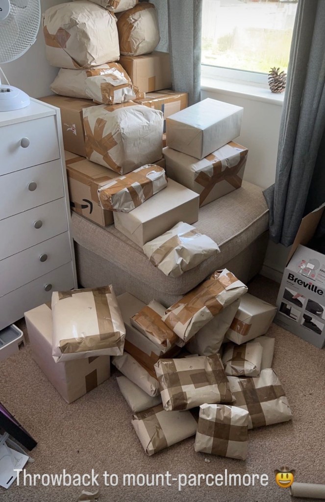 The first photo is me, but also my bedroom when it looked different. I got a super king bed shortly after this so now my room can only go in one very boring configuration! The second photo is a noodle thing I made, and the third picture is Koala on the day I bought him from TK Maxx. The fourth photo is ‘mount parcelmore’ aka, all the stuff I sold in order to fund my next trip lmao.