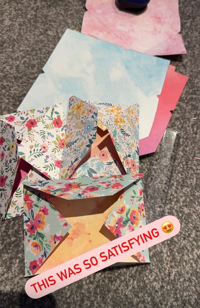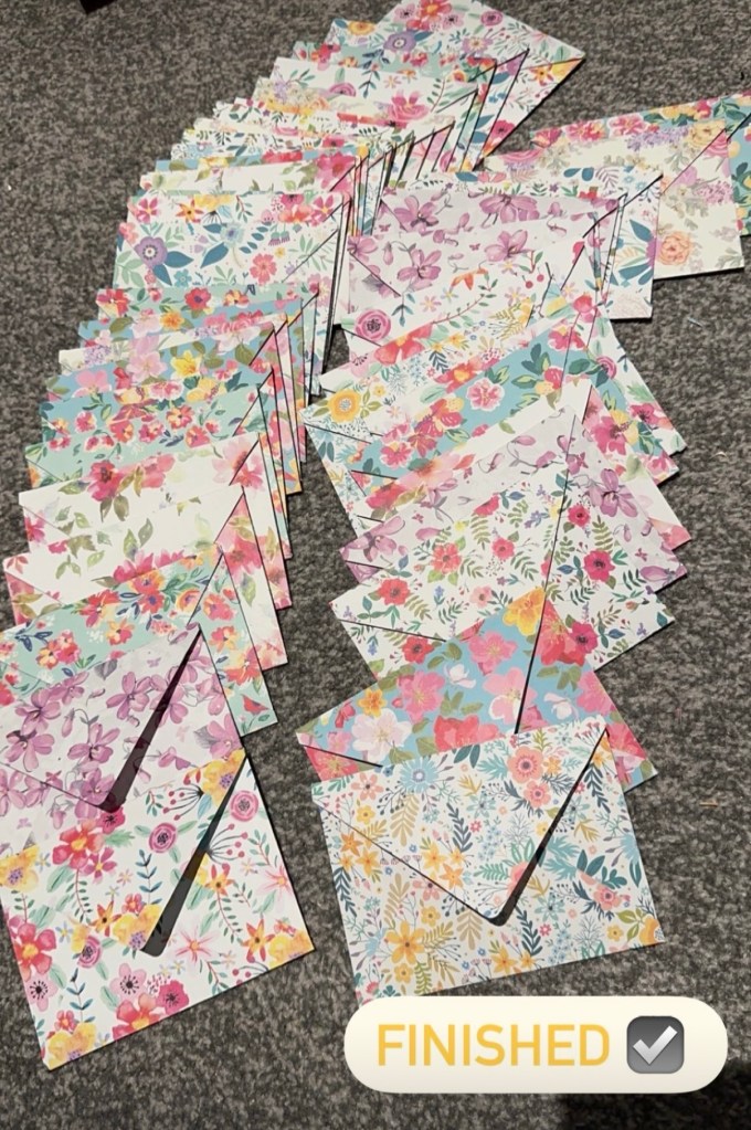 Ah, the many little envelopes I made. I saw some cute floral paper in a store while I was in Manchester for a concert the year prior and it had cute watercolour prints on the flip side and I knew they would make wonderful envelopes! They were meant to be a gift, specifically “open when” envelopes but I never managed to finish them. I think I made far too many and I bit off far more than I can chew.