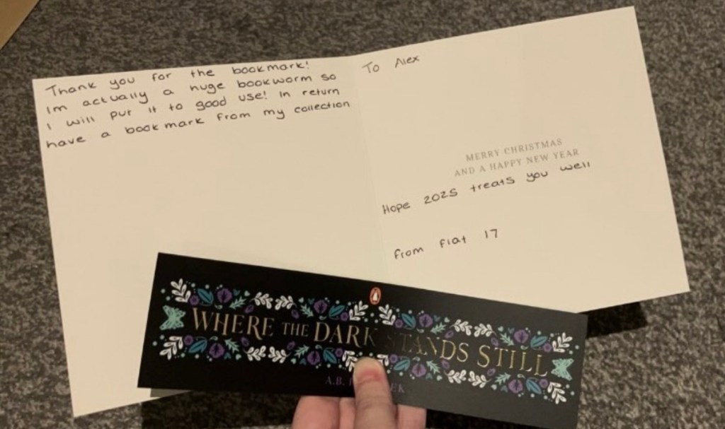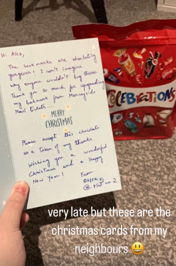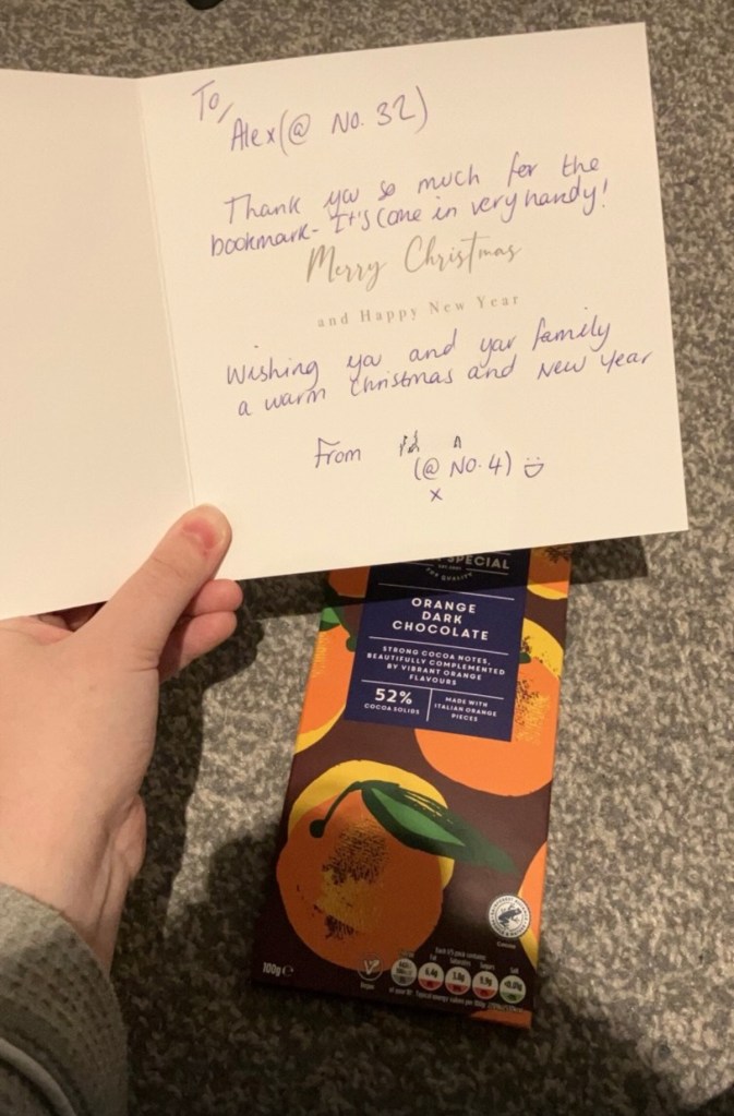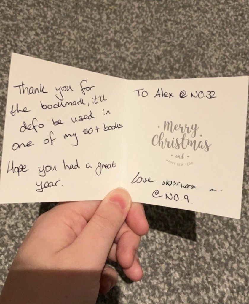 And finally, these were the Christmas cards I got! I have again distorted names, but my neighbours are so kind. I got chocolate and even some bookmarks back which I use in my books still! The last photo was a thing I made, and I think it was very cute to post here. See yβall in the last yearly review- 2025!