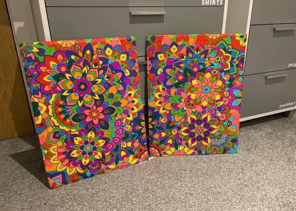 This was an art project I worked on throughout March. There was originally going to be three, Iβm not really sure what happened to the third one, but two survived. My parents loved these so much they bought them off me for Β£50 lmao! Theyβre still in my parentβs bedroom haha.
