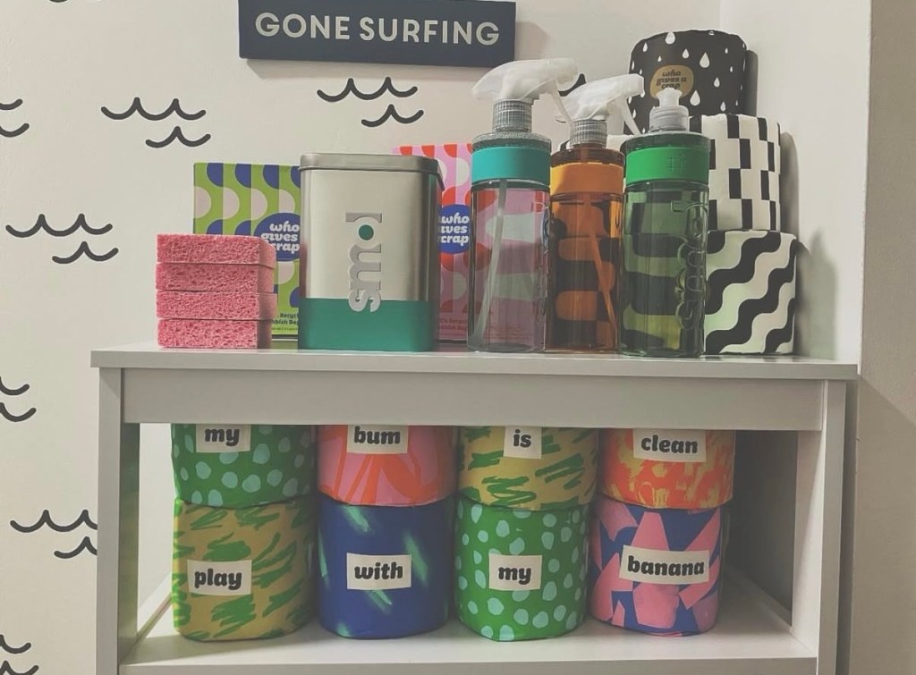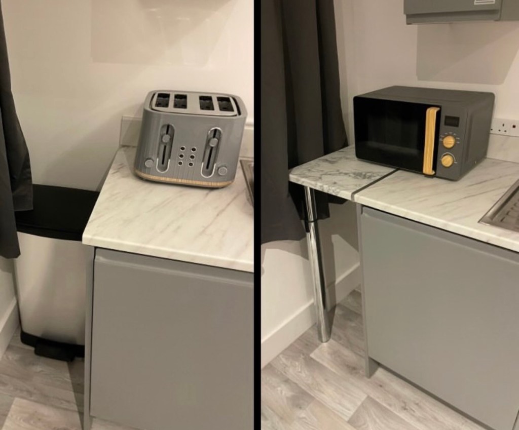 In March I also did this. Before March, my microwave lived… on top of the fridge. But I have a fridge that’s built in to the rest of my kitchen and I had to stand on a chair to reach it. It’ll most likely be in one of my old vlogs from 2023ish, you can watch it HERE. And one day I almost fell so… I simply found a bit of worktop that sort of matched at B&Q and extended my kitchen. Not pictured, but I found the perfect Simple Human bin that fit perfectly under it from TK Max!