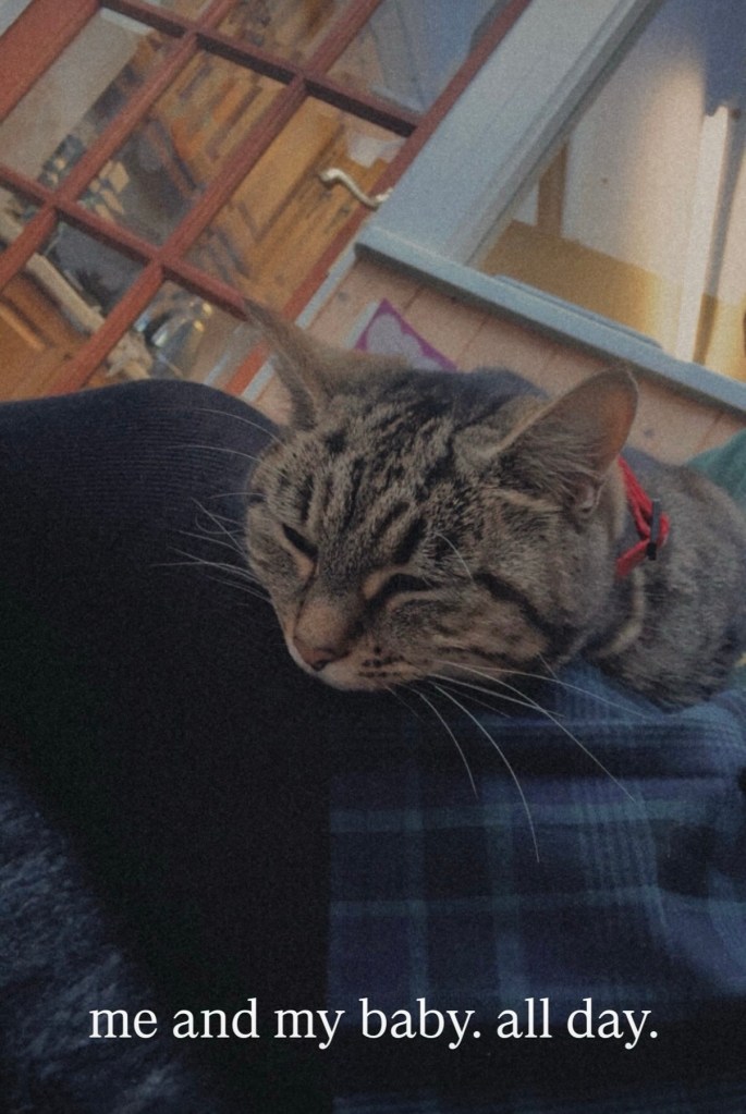 In May I met Indie. A stray cat who was abandoned by her owner and subsequently gave birth to four kittens under my dad’s shed, after that point we unofficially adopted her and her offspring, and named them too of course. At the time I was struggling significantly and I think my mental health would have been 100x worse if Indie never came into my life. I would lay on the grass like some sort of coming-of-age film and indie would curl up next to me. In those moment I would rant and rave to her about my life’s woes and no one can tell me she didn’t listen because I think she did.