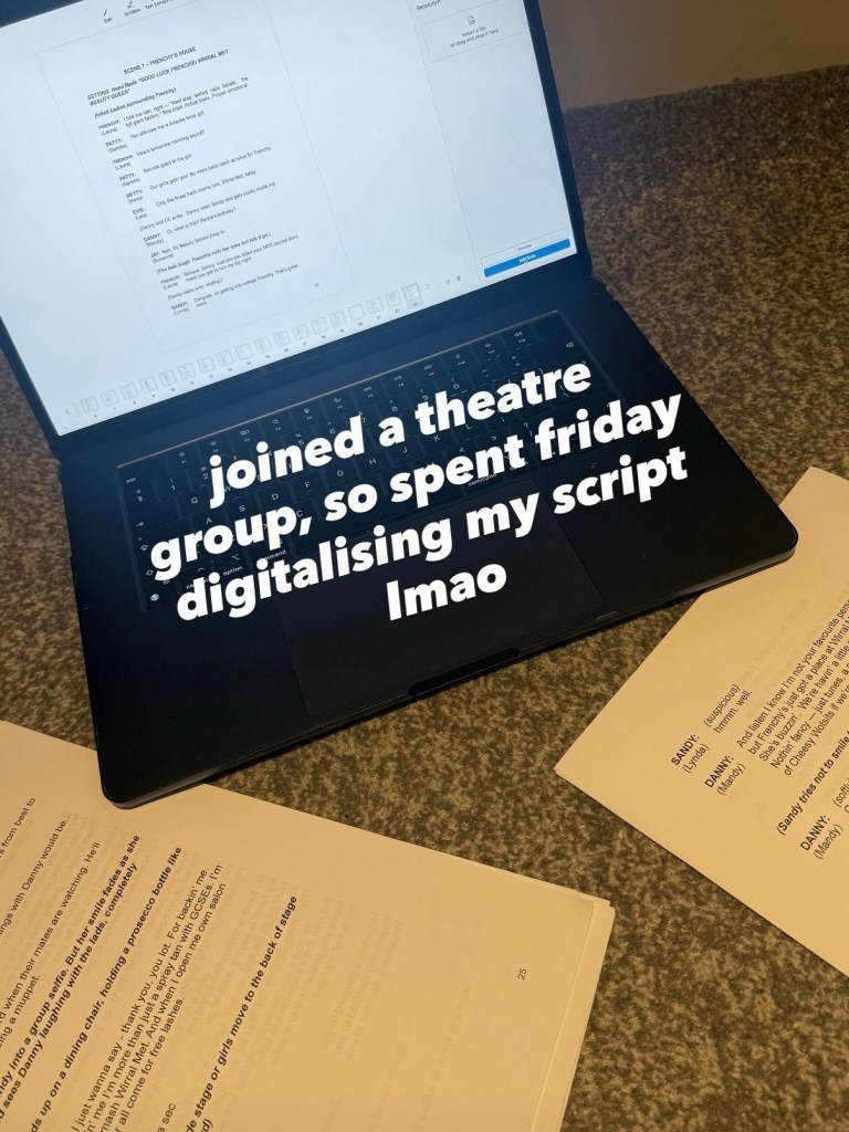 In September I started some hobbies! A choir, a gardening club and a theatre thingy. I did stop going over the winter as things got… bad. Anyway, the first picture was when I digitalised my script, the second picture is my first ever attempt at pruning a shrub. The third picture was a Trader Joes bag I had imported and the fourth picture is when I was making a front cover for my choir folder!