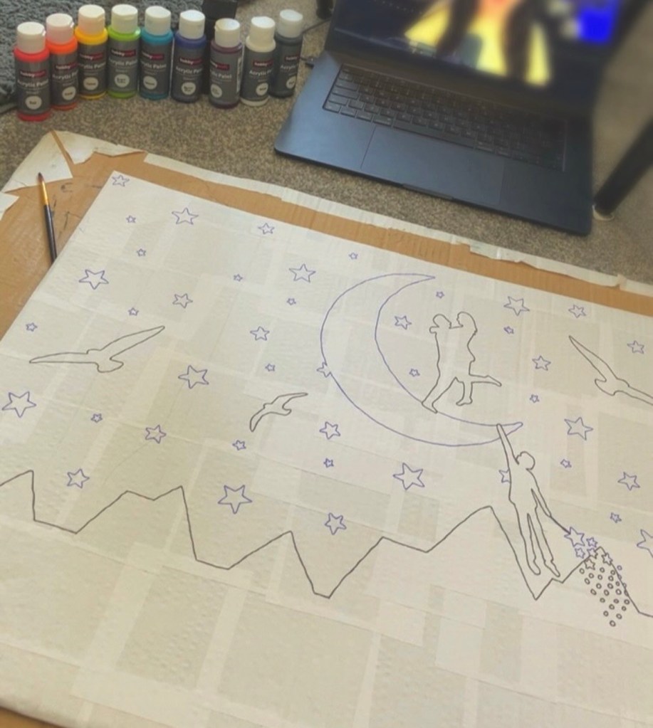 At the end of May I recreated Starry Skies, a painting I originally made back in 2021 based on a poem I wrote of the same name. The third photo was my first boardgame that I made!