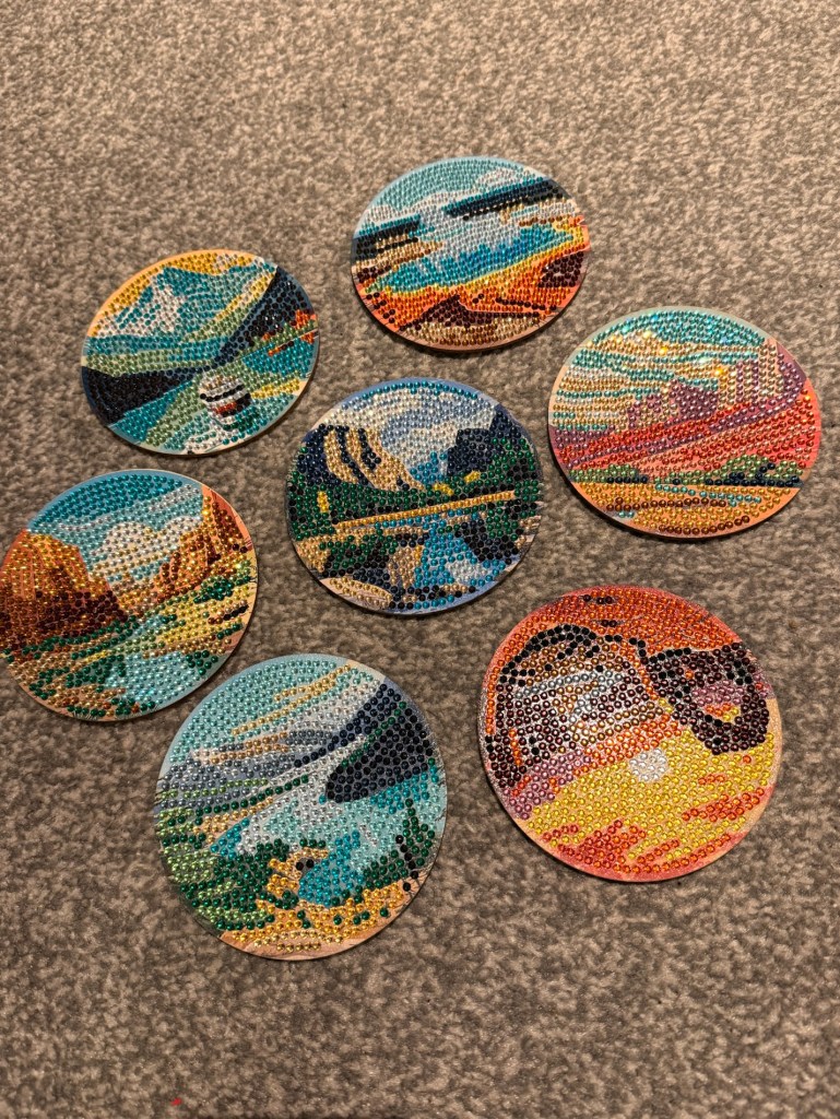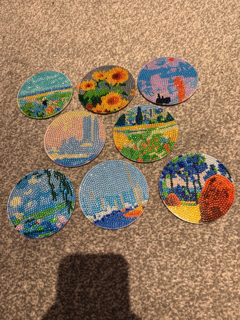 I got these diamond art coaster sets around Christmas time last year and I spend a good chunk of January hunched over my coffee table, meticulously placing each bead one by one. One set was a nature theme and the other was a Monet inspired theme!
