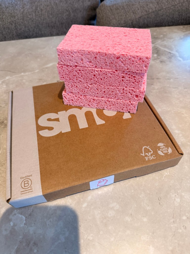 These are the sponges I get for my kitchen! I don’t know if I have ever shown them here, but they’re from Smol, which is a B Corp and they come in completely recyclable packaging. They also post it through my letterbox, which is big. I hate the mail people, they really scare me, I don’t know why… they just do. They’re made from some sort of sea sponge or something, I’m not sure. The sponges, not the mail people. I think that would make them a little less scary though.