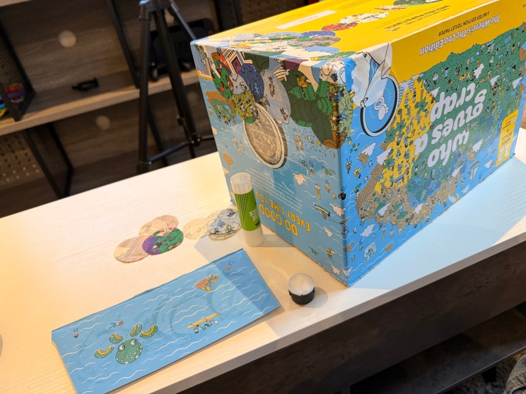 On the theme of crafts, I crafted a craft with this box! The first picture were the many circles I drew and then cut from some brown paper, which was the lining of the inside of the box. The outside was covered in similar sized circles cut from old paper that my Who Gives A Crap toilet paper came in. I hate throwing things away, as you can tell. I fear I inherited that trait from my dad. How un-minimalist of me indeed, haha!