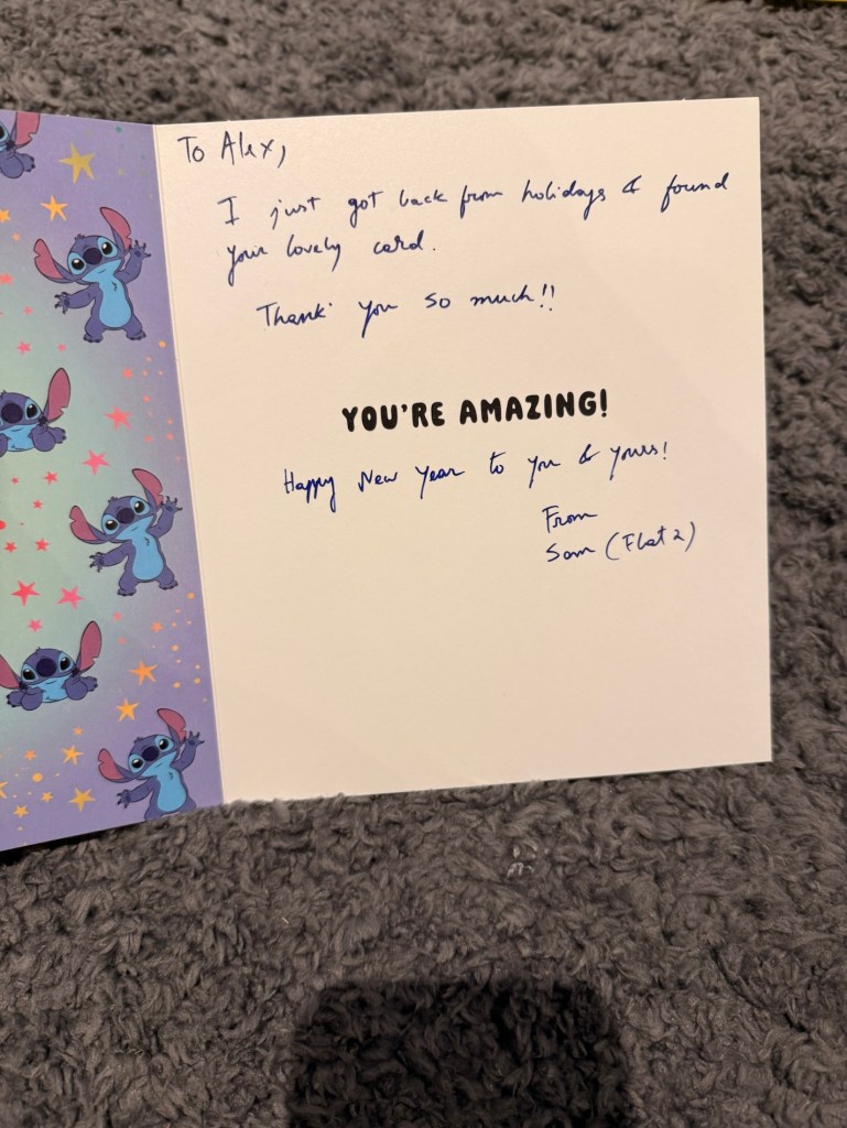 Towards the end of January I bought myself the new Switch 2 controller, this is me playing on my Forever World on Minecraft one evening. Then in the last week of January, I got a very late Christmas card! It made me giggle a lot.
