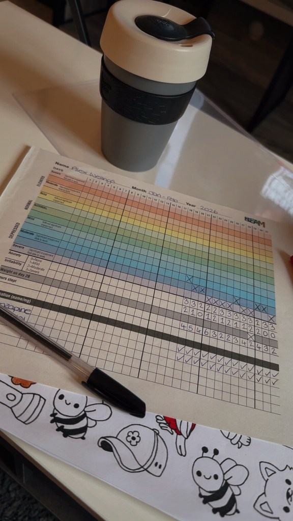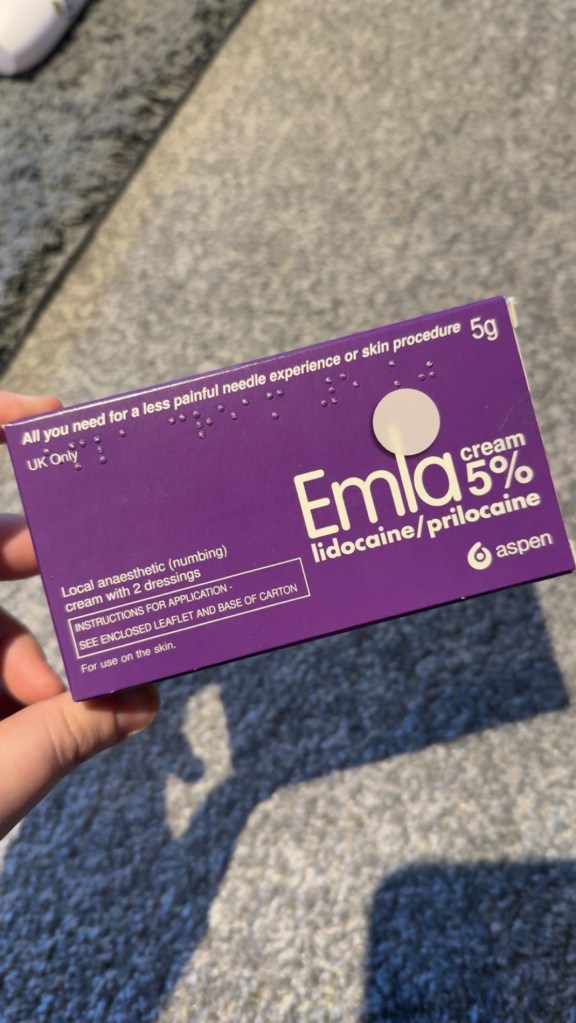 I’m petrified of blood tests so… I bought Elma numbing cream! And my nurse Gaynor was lovely. I had a panic attack and she sat with me for so long. She let me lay down and told me to “think of sexy men on the beach… or women if that’s my preference” I still giggle about that. The chart is a mood chart I have to fill in every single month, which is actually less cumbersome than I expected.