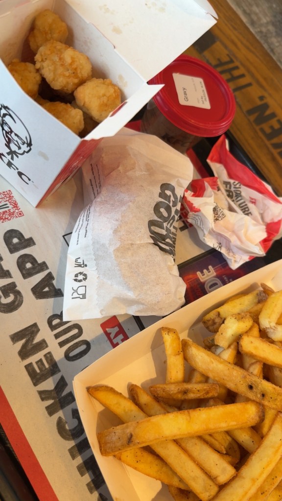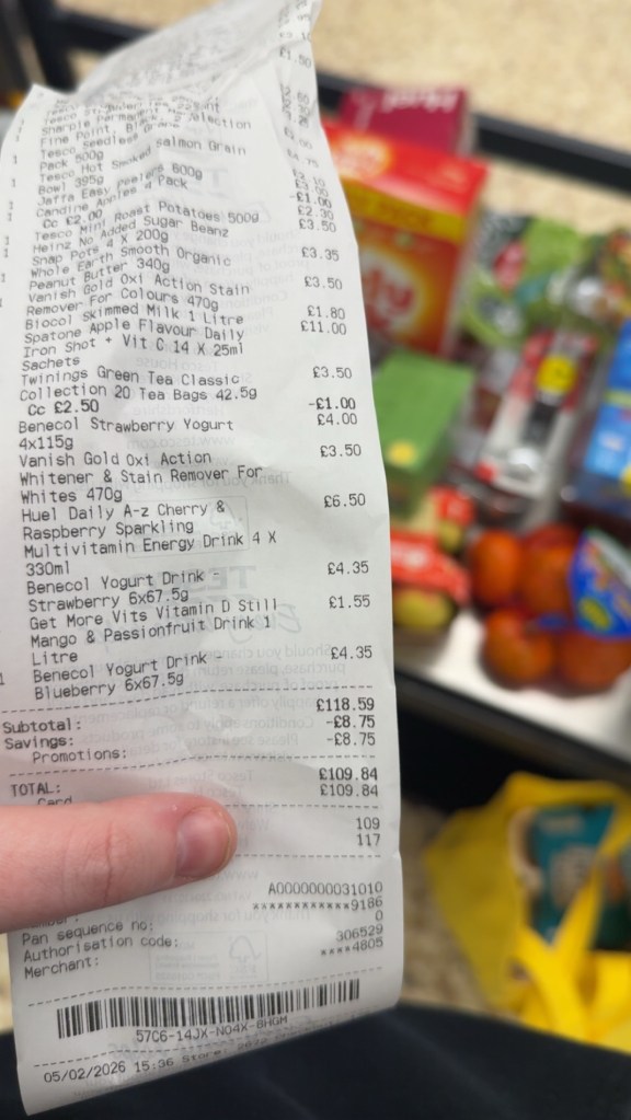 This was my next ‘big shop’ and… you can see vegetables still, so not all is lost! but then after my busy shopping trip, I had to stop at… KFC, obviously. also, the length of my receipts made me giggle, so I just had to take a picture of it once I’ve finished packing up the shopping haha!