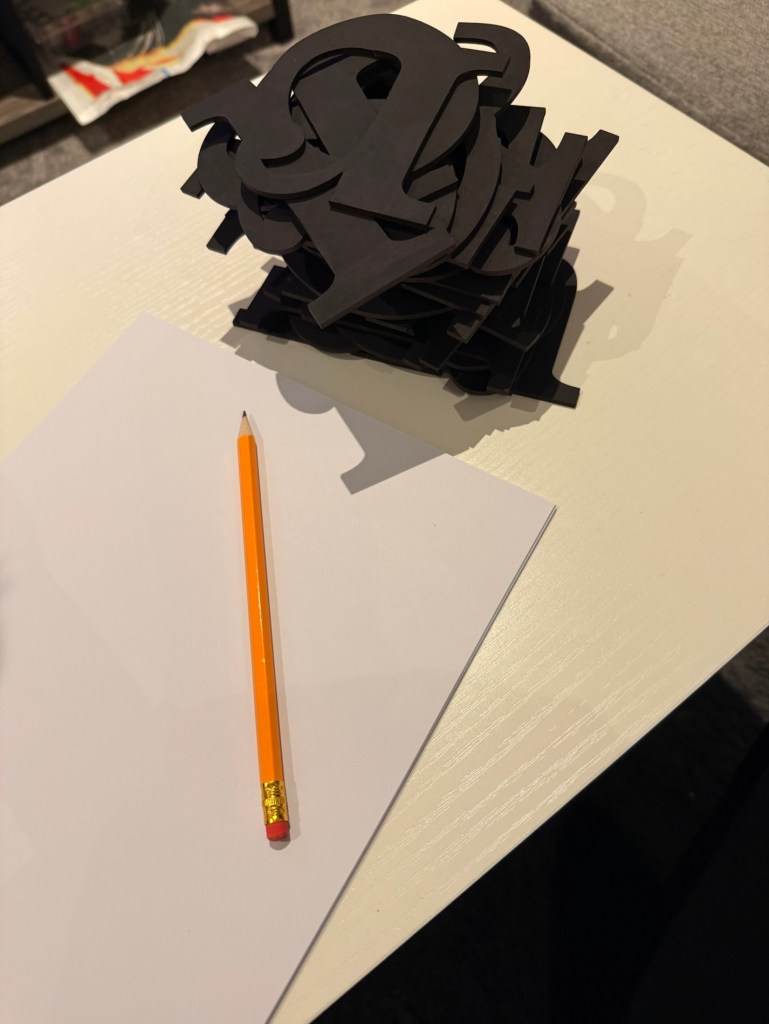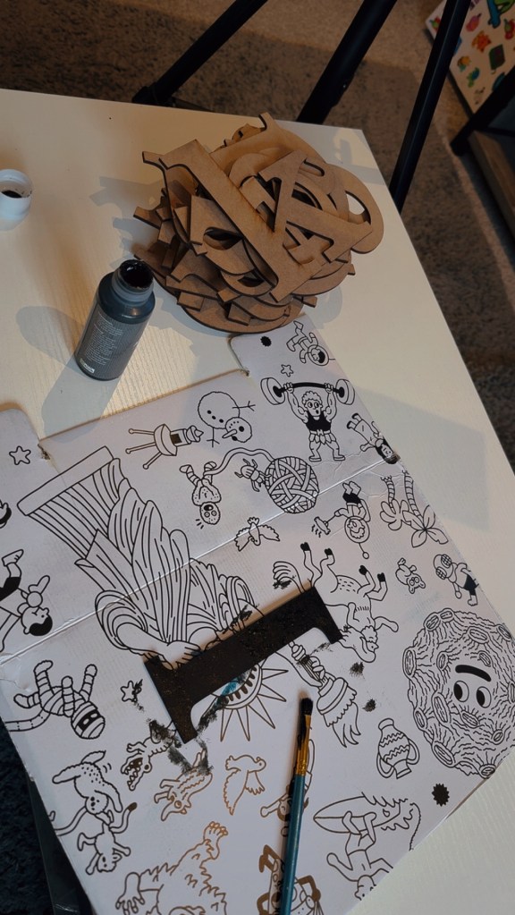 At some point earlier this year I bought these cute little wooden letters, I had many ideas for what I wanted to do with them… but all my ideas required multiples of at least one letter to which I didn’t have, so I deduced to firstly, trace over each letter and save the copies to the files in my MacBook for any future ideas. For the actually wooden things, I painted them all black and stored them under my bed for a future project!