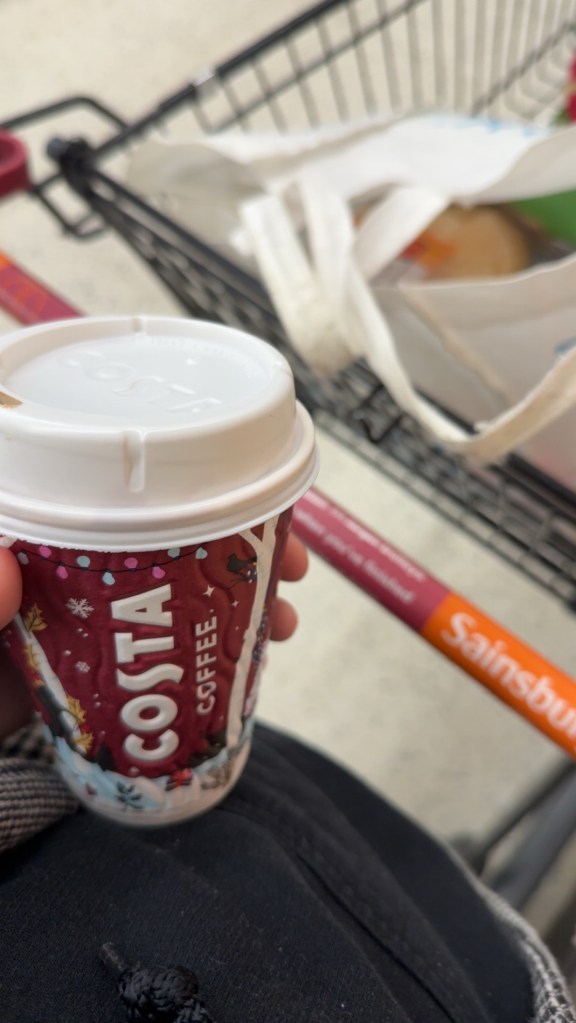 Just a few out my outings- the first was a (very high cholesterol) meal at Burger King… as we can all see, my low cholesterol diet didn’t last very long. The second picture is when I was shopping in my hometown and I got a costa!