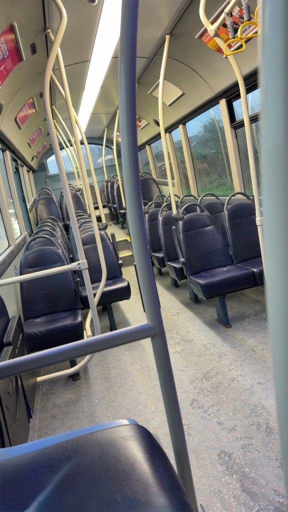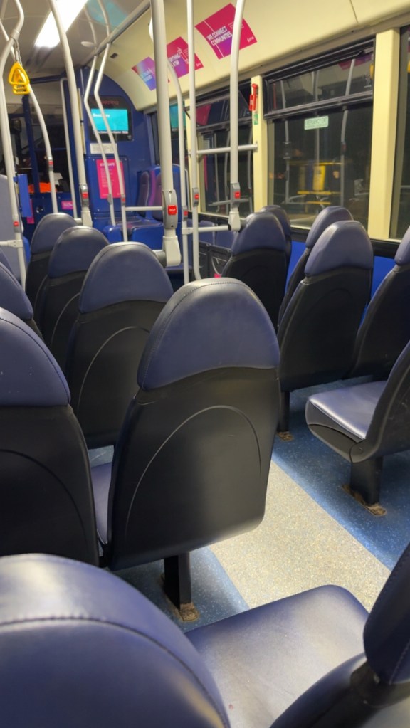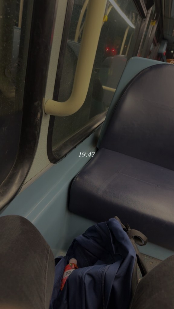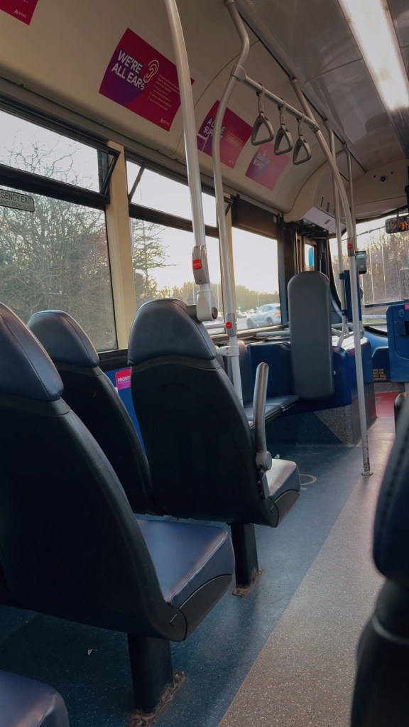 Bit random, but I got this new backpack which I ended up really hating. Like it’s so big and so bulky and I’m sure I almost give people black eyes when I swing around on buses to sit down. Unintentionally, obviously but it does match the seats on this very empty bus. It’s a lot lighter outside now but this is indeed the same time. If not later then the times I got the bus earlier on in this post it’s always so eerie seeing it’s so empty.