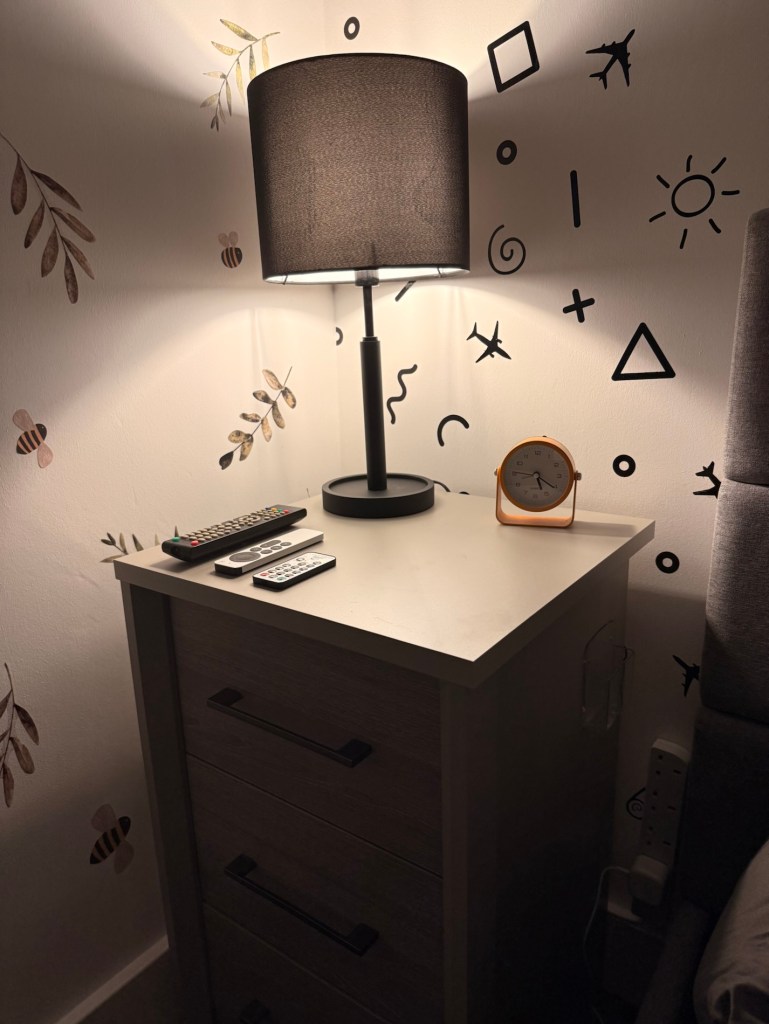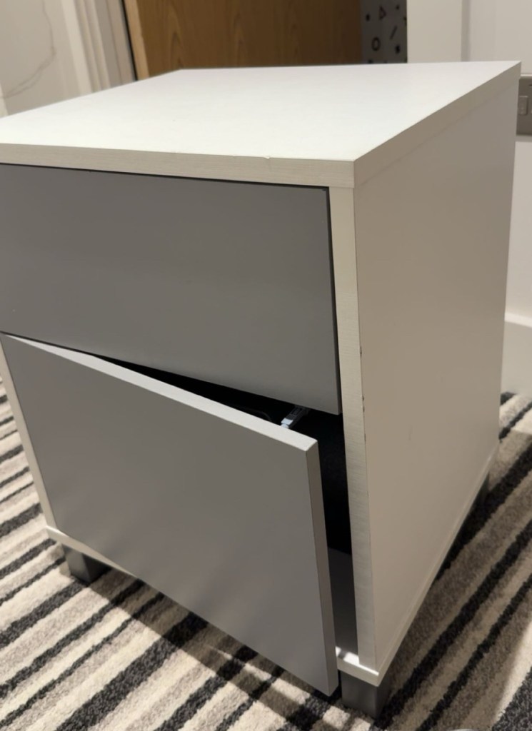 These are my new nightstands!! I have the matching dressers in my room, I got two of them and I waited about SIXTEEN WEEKS for my nightstands to be delivered. I loved them! But then, when me and my mum took my old nightstands downstairs, we took one, and when we were gone for no more than FIVE MINUTES boring the second table down from my apartment, and by the time we got downstairs…