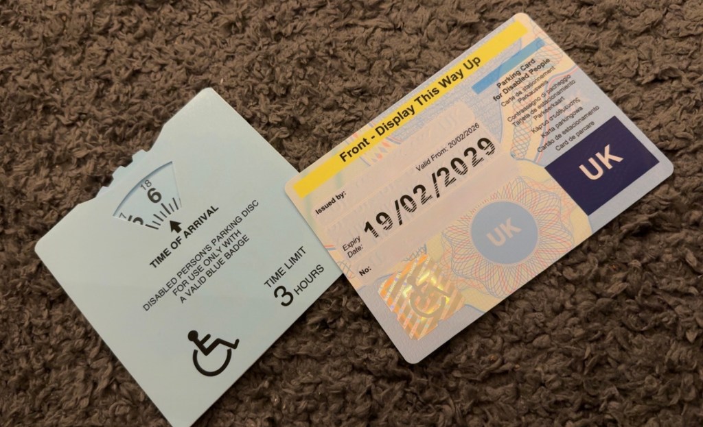 I finally was eligible for a blue badge in my new county! I was eligible in my old county when I still lived with my parents but my new county’s restrictions were more strict I guess. Again, all detailed have been removed, but aids like this really really help me and my independence.