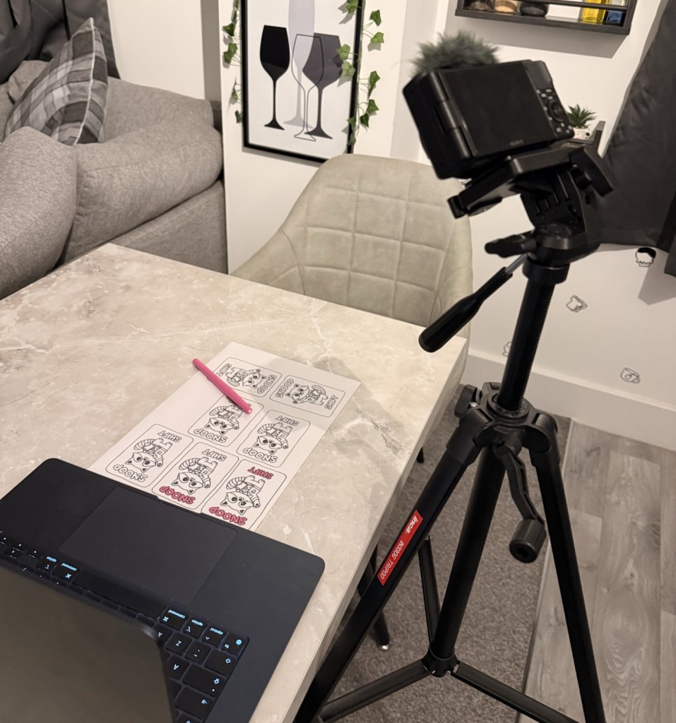 Another sneak peek from a project I’m working on, this time I’d actually made it out of bed, I was colouring some things while watching YouTube sat at my dining room table, which also doubles as a desk!