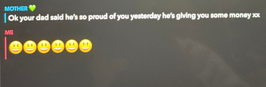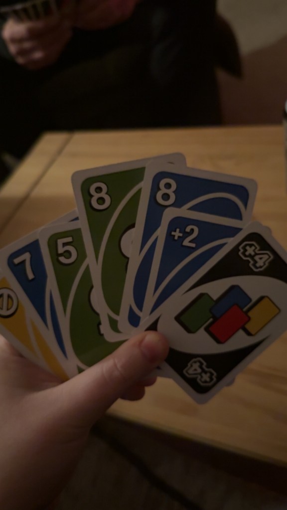 This was from the night before my birthday. I stayed overnight at my parent’s house as I didn’t want to “wake up alone” on the morning of my birthday. So that night I got to choose what we had for dinner. I chose Indian food, and I took my UNO cards with me so me and my mum ad dad played a few games before they went to bed. I however found it rather hard to sleep on my old bed, it was very small and… lumpy, I guess? I have no idea.