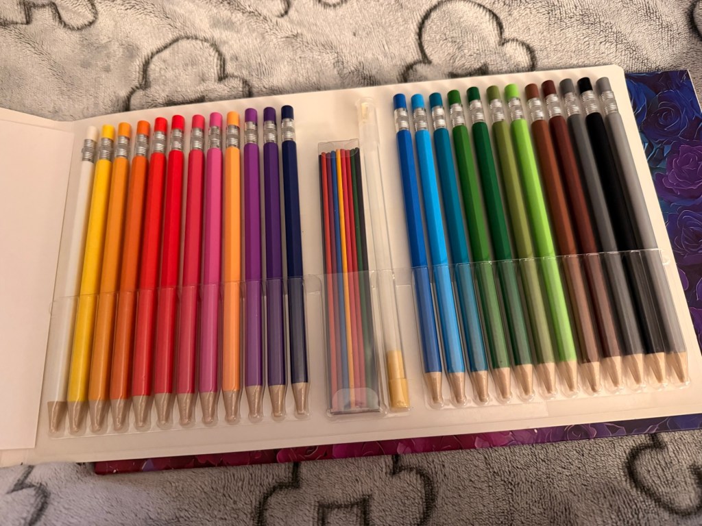 Some other things that are going to be in my unboxing video the first pictures really intrigues me because the mechanical coloured pencils with a specific type of sharpener the only sharpens the lead and creates a lot less waste than when you sharpen traditional pencils. The last picture is a binder I got for some magazines I collect. I took this picture not because of the binder, but because I was proud of myself for answering the door to the mailman for the first time in nearly 2 years. Answering the door has always been a big fear of mine, for reasons that most people think are not based in reality. So I really think the medication is starting to help. But I can only hope.