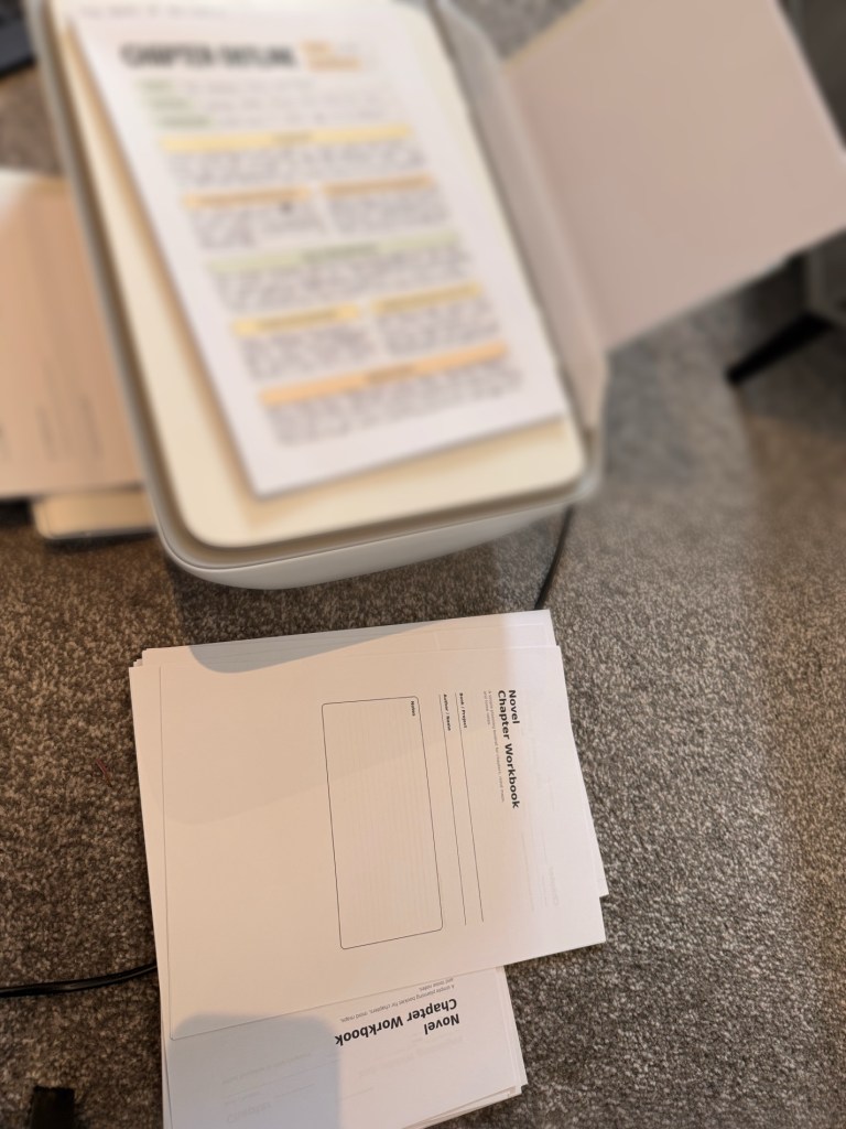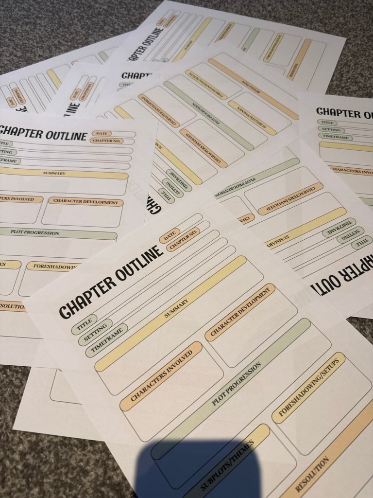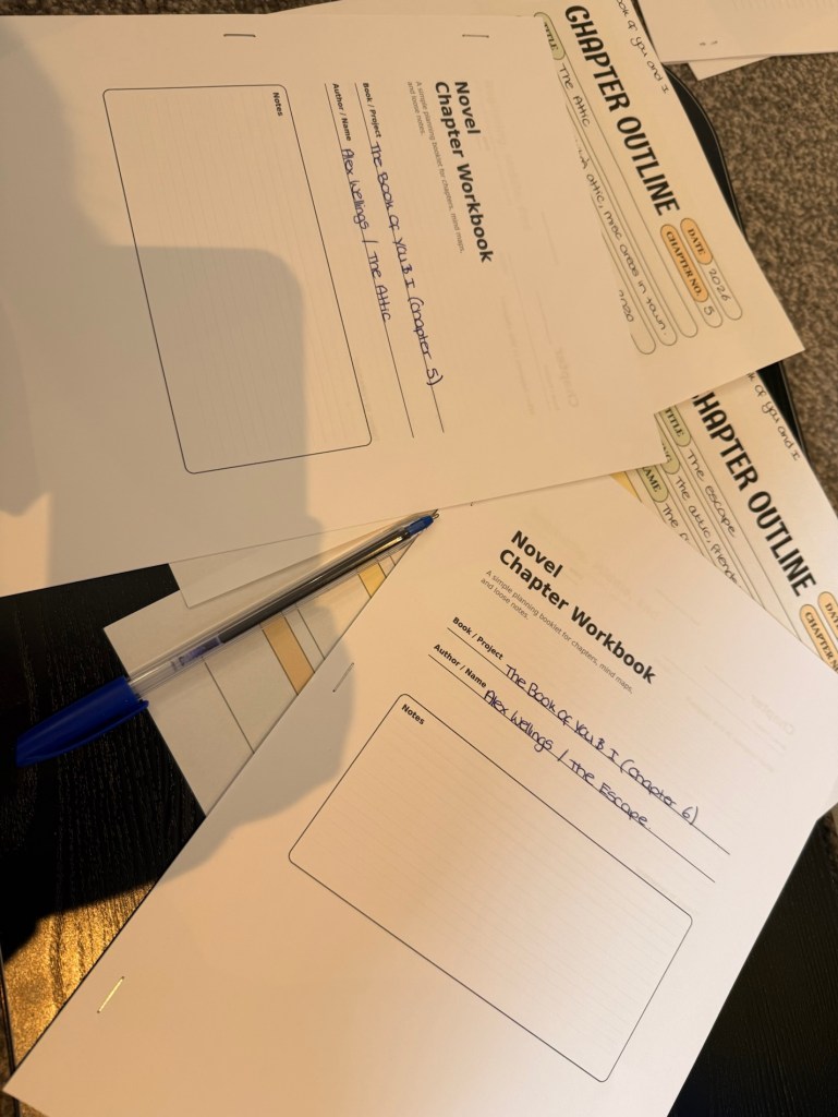 I made these novel chapter workbook using ChatGPT and printed off 10 of them for the next 10 chapters of my book. They are not to write the full chapters in but to instead to make mind maps and plans and bullet points. Because I usually get so many ideas about different parts of my book all in different chapters by the time I get round to writing it, I’ve forgotten half of it so I’m thinking if I can write everything down then when it comes to writing the actual chapter, I’ll be less overwhelmed and I won’t forget as much!