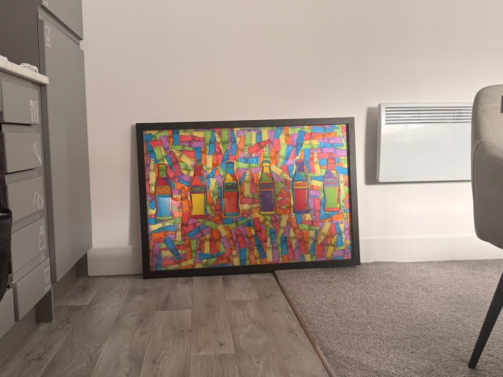 So it was finally time to get a frame for that big Coke bottle picture that I had worked on a couple of years ago, there is a post about it on here somewhere. I had to measure the length and width of the painting and then times it by 2 to work out the perimeter and then I had to give the exact measurements, all in all this frame cost me £75 so I just hoped I did the measurements correct!