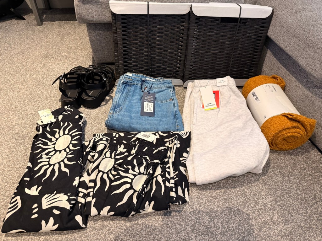 This was the stuff I bought. I am still even today, mindful of the stuff I bring into my home. I got the basket which I needed for my books and a yellow blanket for my bedroom. I then got a pair go grey joggers as mine got too big and I had sold then weeks prior on Vinted, the same with the jeans- I had a pair that I could no longer fit into, so I sold them and was actively looking for a replacement. Lastly I got some sandals and a quirky little outfit for my trip to Greece later on in the year!
